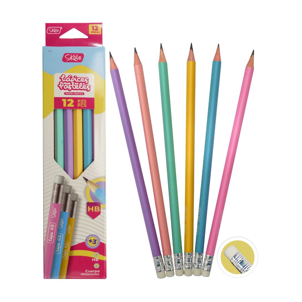 LAPIZ GRAFITO CUERPO DE COLORES HEXAGONAL HB (12PZAS) SKOLE cantidad