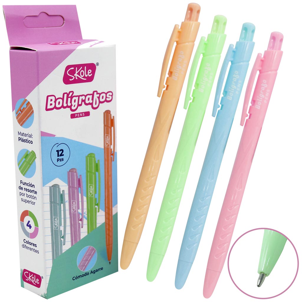 LAPIZ PASTA AZUL RETRACTIL (12PZAS) SKOLE cantidad