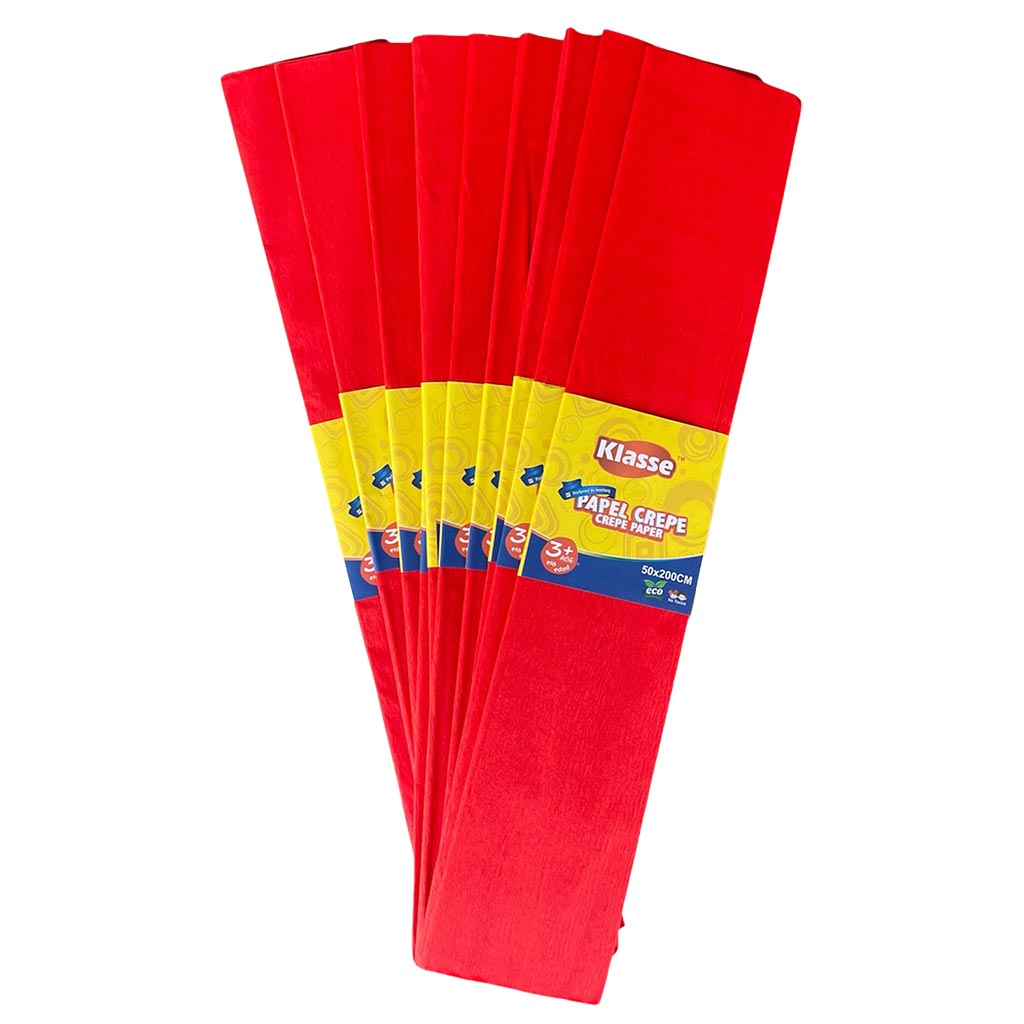 Set de 10 pliegos de Papel Crepé color rojo, ideal para uso escolar u oficina y venta en librerías.