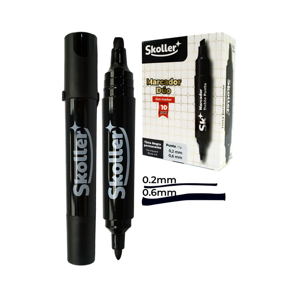 Plumon Perm Doble Punta Negro Set 10Pzas, ideal para uso escolar y venta en librerías.